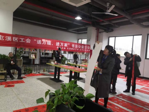 活動(dòng)現場(chǎng),書(shū)法家們揮毫潑墨,一幅幅鮮紅的春聯(lián)和寓意吉祥的賀詞躍于眼前,吸引了諸多職工觀(guān)摩等待。一會(huì )兒工夫,現場(chǎng)擺滿(mǎn)了紅彤彤的“福”字和春聯(lián)。職工們一邊將春聯(lián)、賀詞晾干,一邊把干了的賀詞、春聯(lián)收集整理起來(lái),書(shū)法家們則揮斥方遒,現場(chǎng)一派歡樂(lè )祥和的氛圍。大家紛紛表示非常喜歡這樣的活動(dòng),因為,紅火喜慶的年味已透過(guò)一幅幅春聯(lián)作品躍然紙上,給人帶來(lái)無(wú)限歡欣!